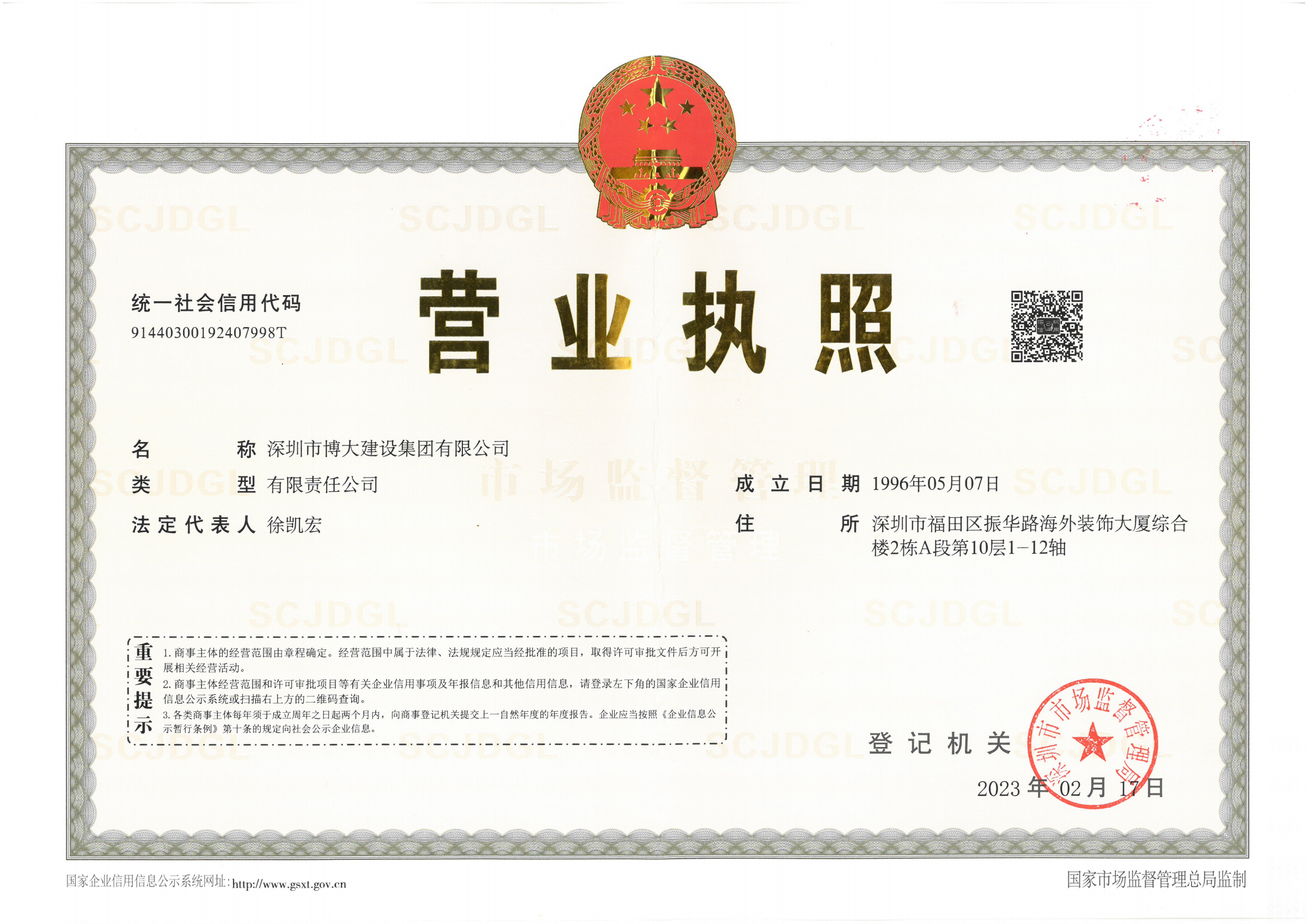 博大建設集團營業執照